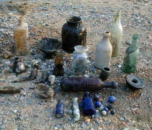After washing and rinsing your freshly dug or recently acquired old bottle, you will probably find that it has mineral deposit stains that just won't wash off. The best way that we have found to remove these stains and restore the bottle to its original luster is to tumble it in a cleaning machine. |
