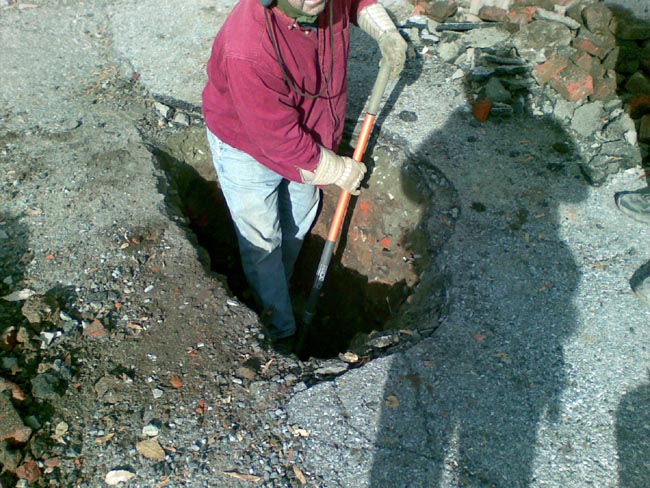 Back to Wilmington again. Today we are digging in a parking lot on the east side. Alan secured permission for us to dig a pit that was sinking into this lot. I arrived around 7:00 to find everyone else was running late today. So I decided to go grab something to eat by time I returned Alan and his friend Ron had arrived. Shortly after Doug showed up. We quickly got started breaking up the old asphalt with a heavy breaker bar. It wasn't long that we had a hole big enough to dig through and started opening her up. We found the one wall of the pit very quickly it was a large round brickliner that was shared for two houses. It was about 5 feet across. This lot was in an 1830s part of town and we hoped would produce some nice pontiled Wilmington bottles. The digging was difficult on this one with a heavy clay cap that was full of bricks. As we went down the cap continued. However around 9 feet we started finding some circa 1890s bottles and a bit of loam coming up on the sides of the pit. Which is a sign that the cap is going to end and a trash layer begin soon. at about 11 feet we finally had all the cap out and I started on the trash layer. Sadly it was only about a foot thick then bottom showed its self. This pit was only 12 feet deep and had been heavily dipped. We did find a few local pharmacy bottles and a local smooth based soda. And one lonely pontiled Wilmington medicine.