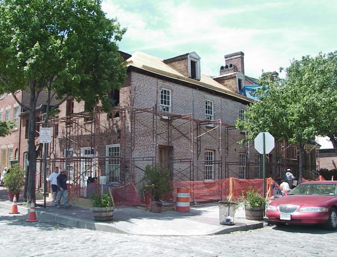 About a month ago while driving around fells point I noticed that they were in the process of rehabbing three buildings on the corner of Thames and Ann streets. Those of you familiar with Baltimore know that Thames is the street right on the water front in Fells point and Ann is one block off Broadway. This was part of the original area laid out on 1763 by Edward Fell. I love digging in this area because the pits are generally trashy and shallow and early. Pits loaded with torpedoes and pontiled sodas have been hit less then a block from this site. Our only problem was that the site was not accessible it was always locked up pretty tightly. Good thing my digging partner is a professional archeologist. He was able to gain permission to do some salvage archeology in the courtyard behind the three buildings. the building on the corner of Thames and Ann was built next to the Robert Long House this house was built in 1765 and is the oldest surviving urban house in Baltimore. The property we would be digging on was originally purchased by Robert Long (a prominent merchant) from Edward Fell in 1763. He sold the corner lot in 1767 the deed states that a house is to be erected on the site within three years. this was a common stipulation on deeds of the time. So we know there had to be a building on this site by 1770.