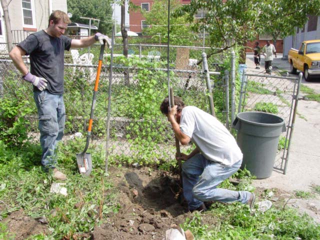 George and Larid opening up the pit. ( A few local businessmen in the background they were selling drugs out of the corner house)