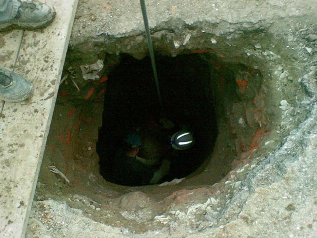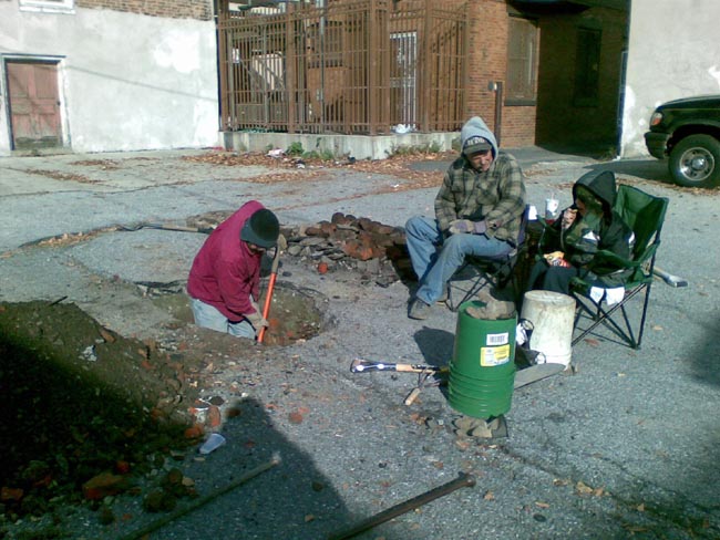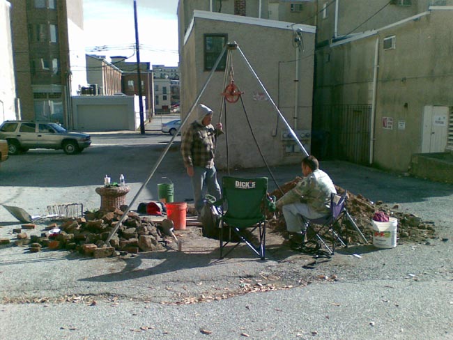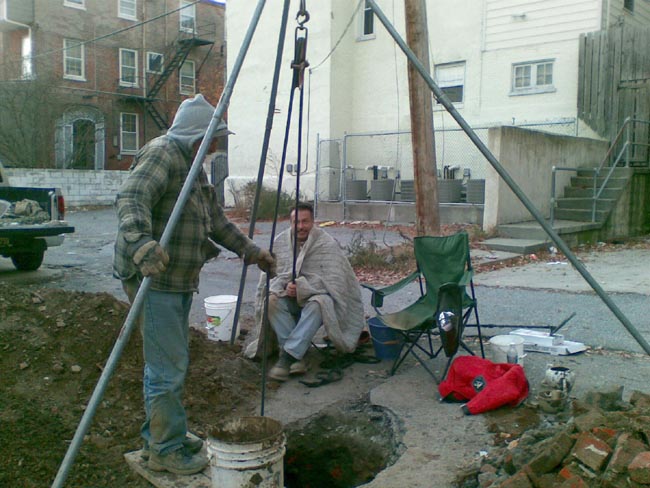Back to Wilmington again. Today we are digging in a parking lot on the east side. Alan secured permission for us to dig a pit that was sinking into this lot. I arrived around 7:00 to find everyone else was running late today. So I decided to go grab something to eat by time I returned Alan and his friend Ron had arrived. Shortly after Doug showed up. We quickly got started breaking up the old asphalt with a heavy breaker bar. It wasn't long that we had a hole big enough to dig through and started opening her up. We found the one wall of the pit very quickly it was a large round brickliner that was shared for two houses. It was about 5 feet across. This lot was in an 1830s part of town and we hoped would produce some nice pontiled Wilmington bottles. The digging was difficult on this one with a heavy clay cap that was full of bricks. As we went down the cap continued. However around 9 feet we started finding some circa 1890s bottles and a bit of loam coming up on the sides of the pit. Which is a sign that the cap is going to end and a trash layer begin soon. at about 11 feet we finally had all the cap out and I started on the trash layer. Sadly it was only about a foot thick then bottom showed its self. This pit was only 12 feet deep and had been heavily dipped. We did find a few local pharmacy bottles and a local smooth based soda. And one lonely pontiled Wilmington medicine.
