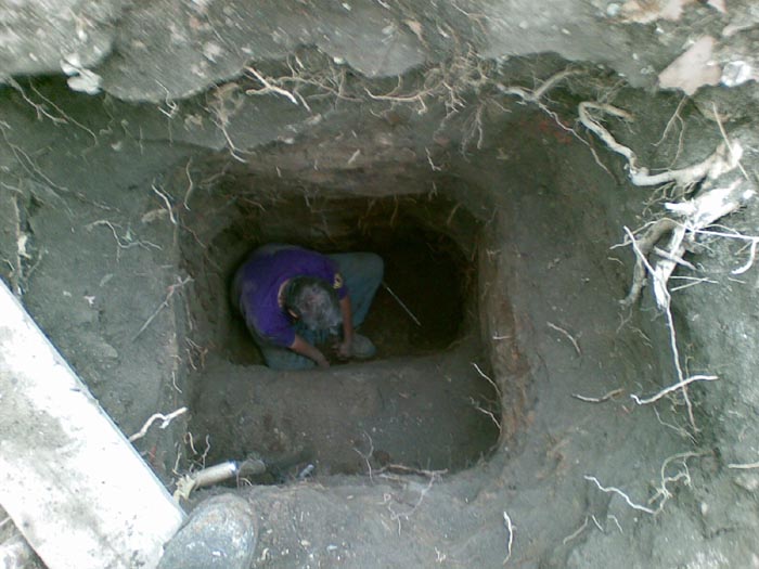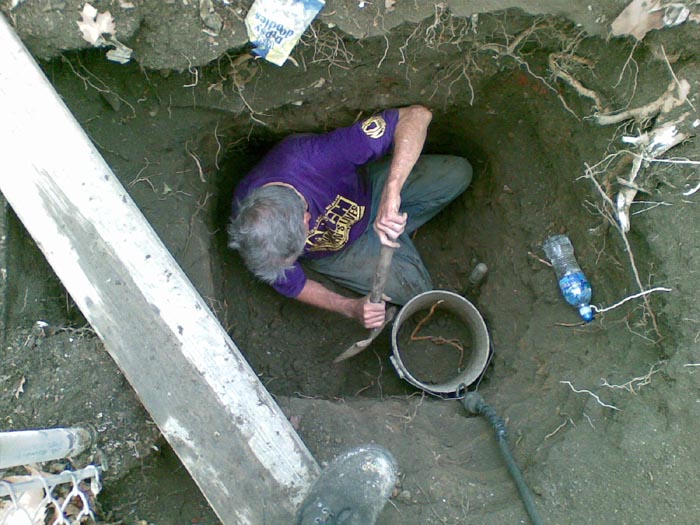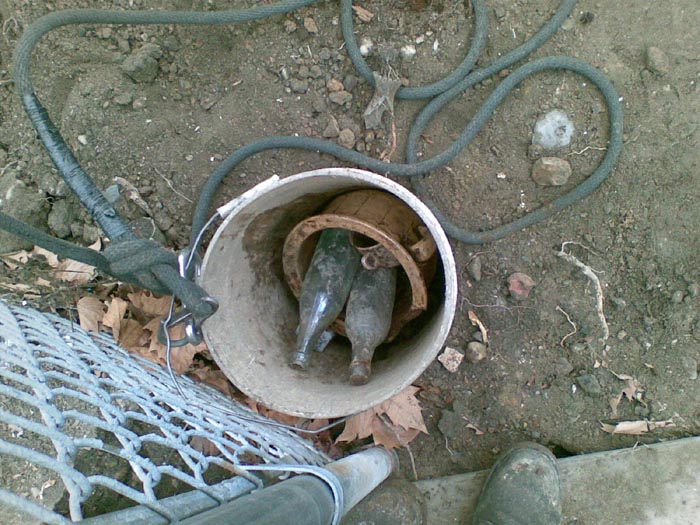 It was just Doug and I again today. After the success last week we decided to try another pit on the same side of that alley. This pit was another 8 foot deep wood square but only had about 6 inches of layer on the bottom. All we got was two local blob beer s an ironstone coffee cup and a damaged yelloware chamberpot. This pit sucked. We decided to spend the next couple hours driving around the city looking for better sites to dig.